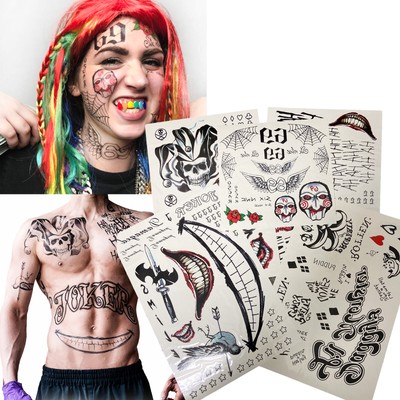 Joker Temporary Tattoos Suicide Squad Costume Cosplay Frenzy Flare