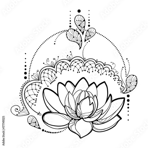 Vector Drawing With Outline Lotus Flower Decorative Lace And